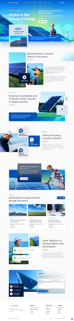 A high-end renewable energy landing page featuring data-driven hero sections, dynamic service cards, and an integrated consultation lead-capture system.